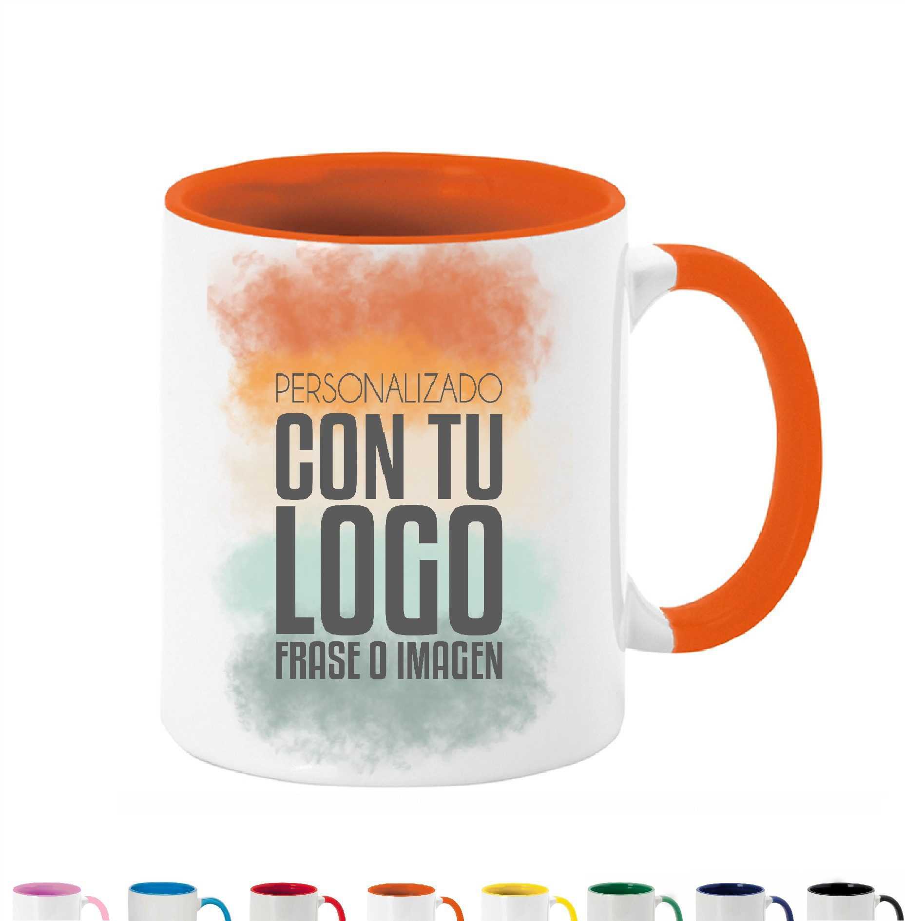 ☕ Taza personalizada de cerámica 350 ml con interior de color. Resistente, apta para microondas y perfecta para regalo.