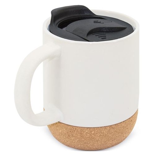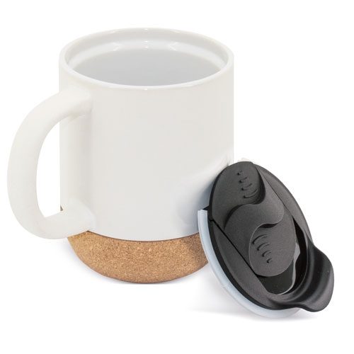 Taza de cerámica con tapa de corcho personalizada 420 ml | Taza eco con tapa