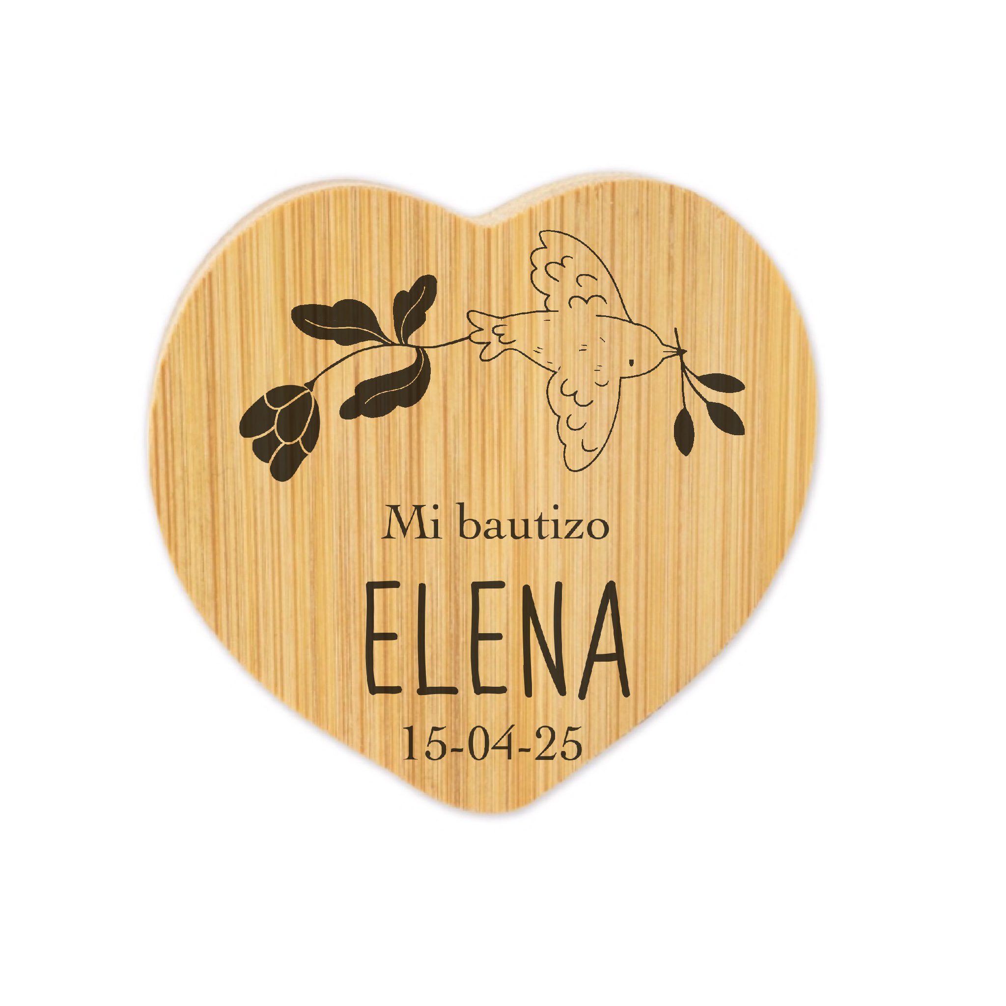 Espejo de bambú personalizado con cierre magnético compacto para bautizo