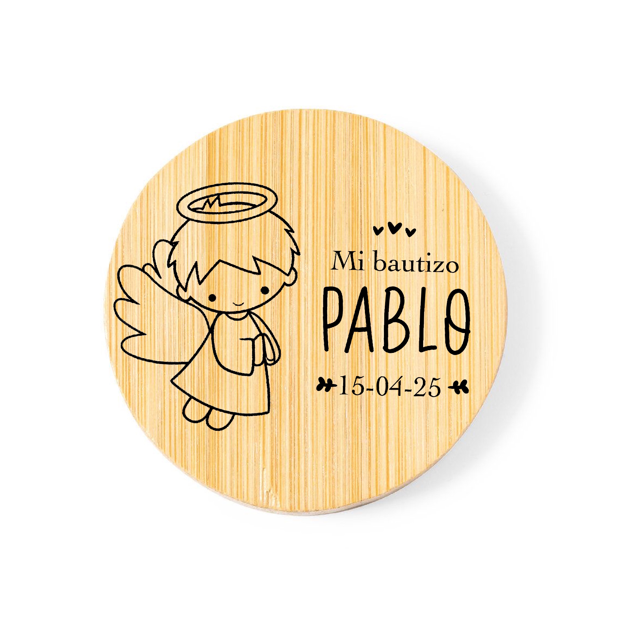 4,50 € Seleccionar opciones Este producto tiene múltiples variantes. Las opciones se pueden elegir en la página de producto4,50 €Espejo de bambú 🌿 Compacto, elegante y personalizable con cierre magnético. Ideal para bautizo.