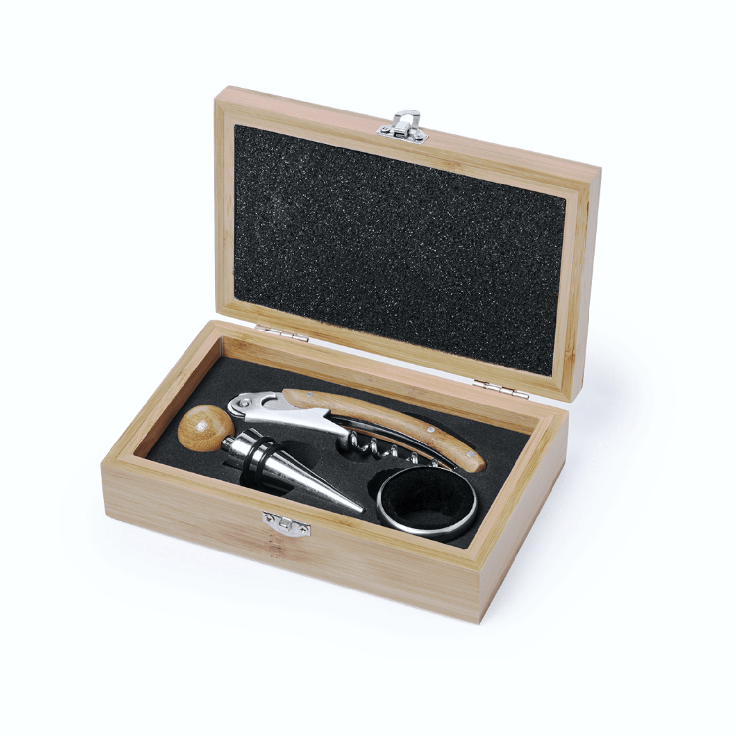 15,50 €🍷 Set de vino en bambú con accesorios de acero inoxidable, elegante y personalizable. Perfecto como regalo original.