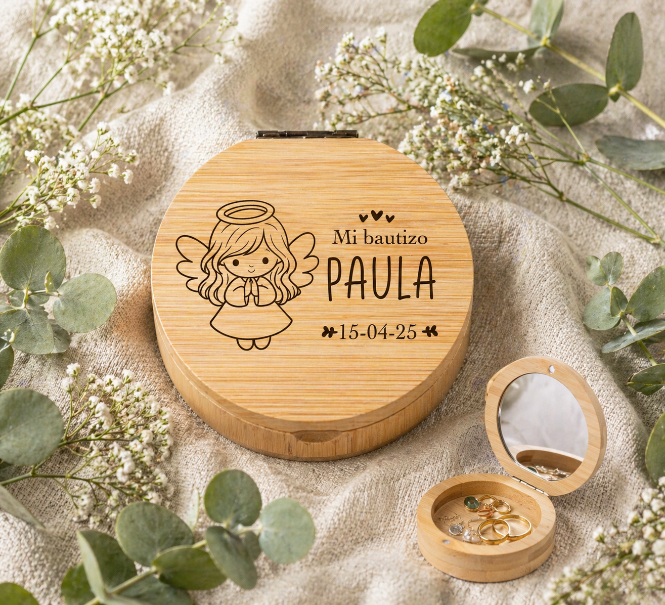 🎨 Disponemos de varios modelos personalizables, con diferentes diseños para niño o niña, nombres, fechas, frases especiales y temáticas dulces y elegantes para que cada bautizo sea único.